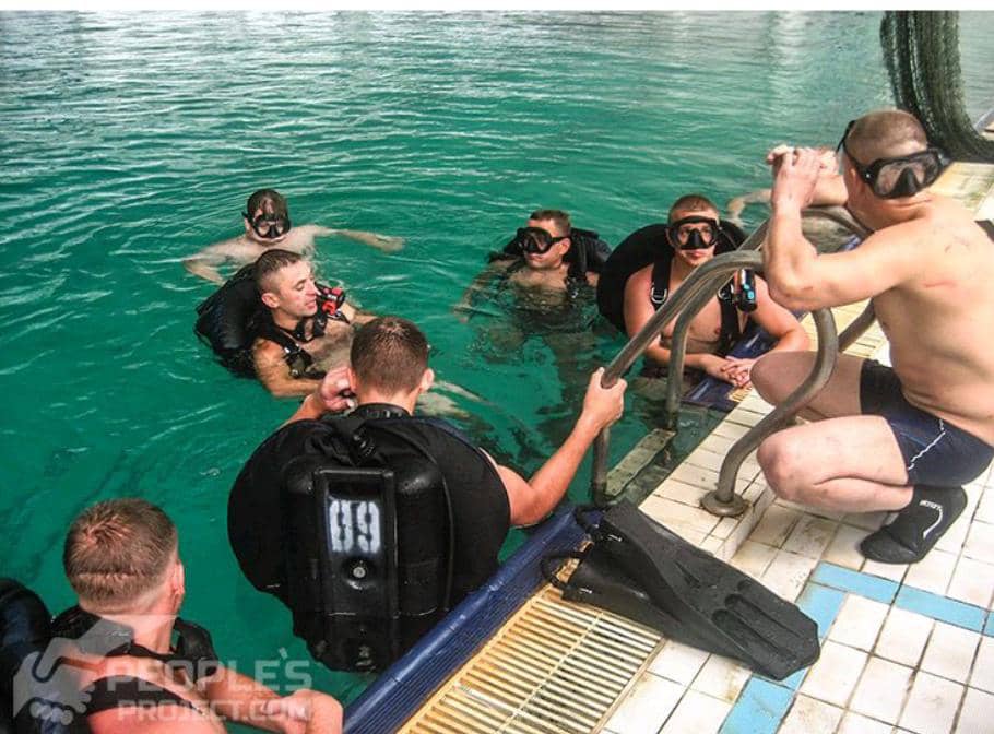 Les plongeurs ont été formés à cinq mètres de profondeur.2017 – L’intérêt de l’Ukraine se tourne vers la plongée militaire en eaux profondes. La photo ci-dessous montre à quel point ils n’étaient pas préparés à cela et à quel point ils étaient mal équipés. Au début, ils ont commencé avec du vieux matériel de sauvetage soviétique, mais cela a changé très rapidement et leurs efforts ont obtenu le soutien du Royaume-Uni et de l’Allemagne.