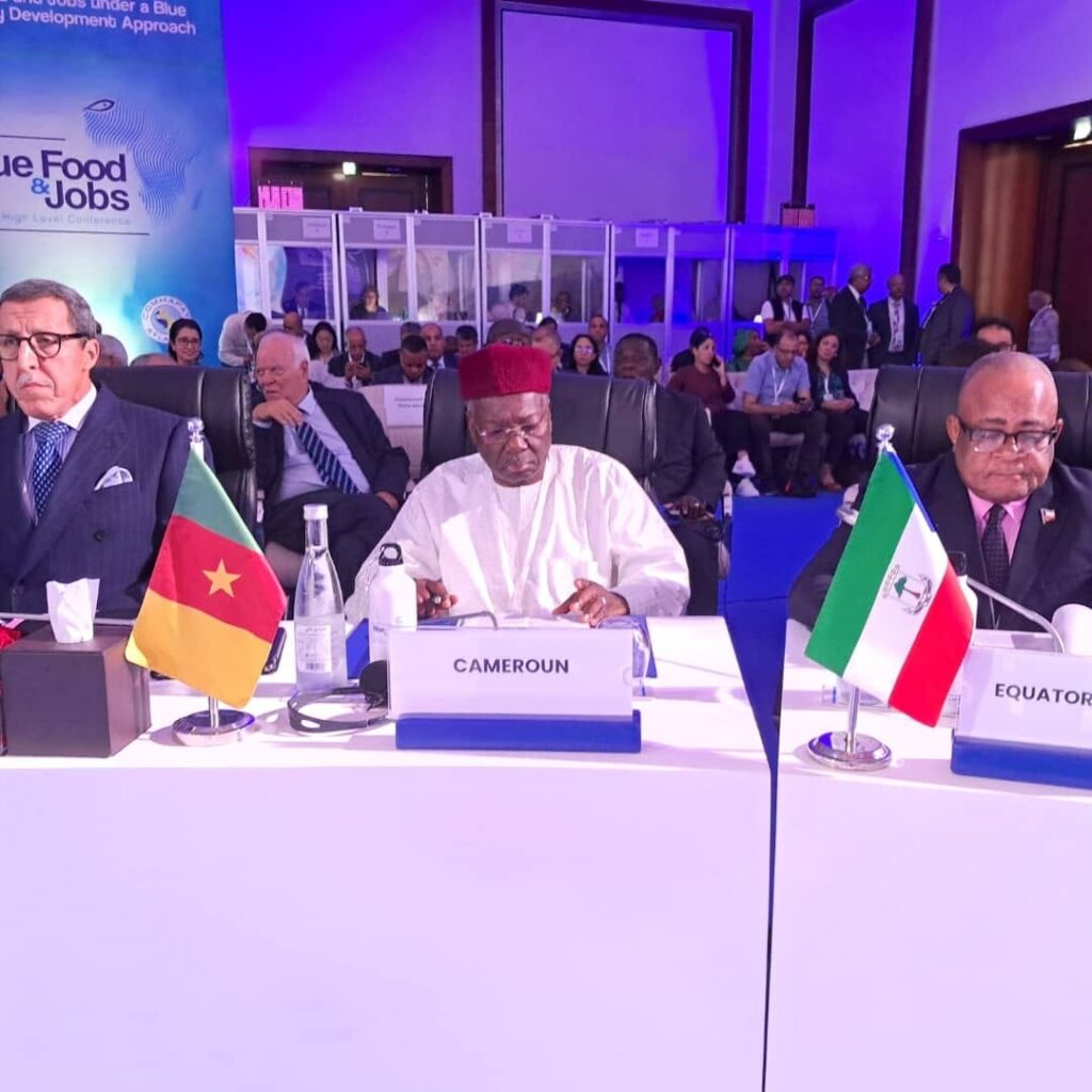 Le ministre de l’Elevage, des Pêches et des Industries Animales qui représentait le gouvernement du Cameroun, y a pris la parole pour saluer comme ses pairs, les différentes initiatives promues par le Maroc qui dynamisent la coopération sud-sud et la coopération triangulaire, notamment dans le secteur de la pêche, de l’aquaculture et de l’économie bleue, avant d’échanger en tête à tête avec son homologue marocain en vue de renforcer le partenariat stratégique autour des enjeux liés à la pêche durable, à l’aquaculture et à la protection des écosystèmes marins.